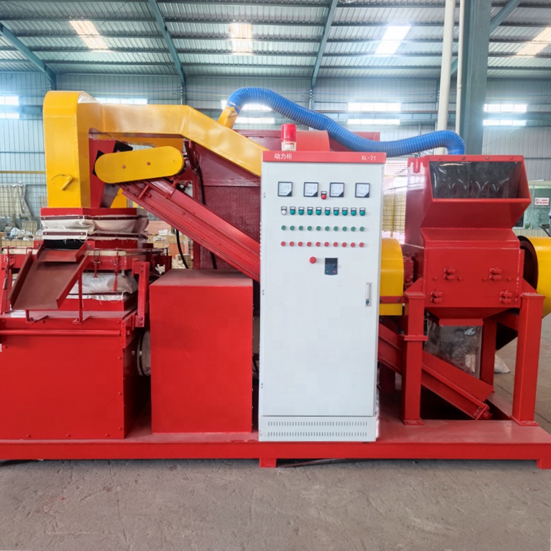 MX-600型一體銅米機是我公司研制成的銅米機成套生產線(主要回收汽車線路線,通訊電纜線,雜線,該設備采用一體結構,節省空間,工作性能穩定可靠。廢舊電線、電纜通過破碎后,成為塑料破碎片和銅米。塑料破碎片與銅米在氣流推吸及篩箱直線激振雙重作用下分離芯皮,使之在篩面波形躍致力前行,將銅米、塑料皮以及銅和塑料的混合物分別從不同的出料口送出,灰塵經由風道送到收塵器。
