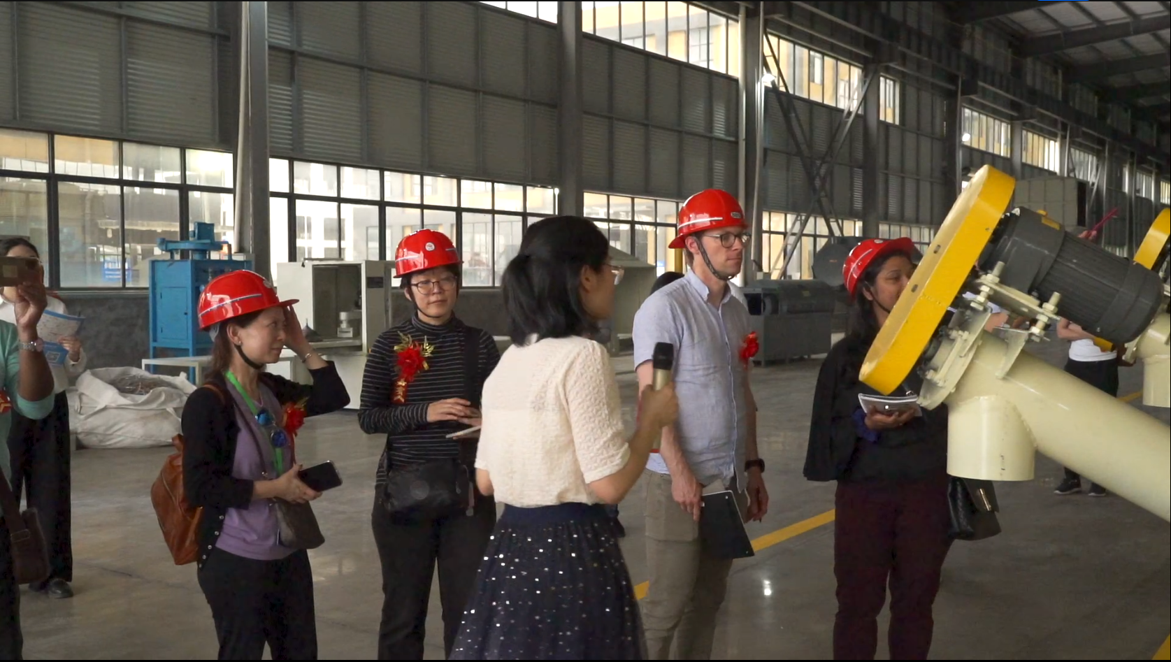 代表團到車間參觀交流我司廢鋰電池回收成套設備演示線、原材料、設備產物
